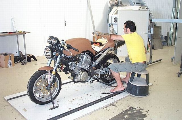 Le hasard des rencontres va lui faire réaliser une moto sur mesure pour Philippe Starck, sans pratiquement jamais le rencontrer, juste une fois une demi heure, définition uniquement par fax, tel, mail, sans jamais avoir le moindre dessin…et souvent par secrétaire interposé. Pas simple mais le personnage sait ce qu’il veut et le résultat est très sympa !
