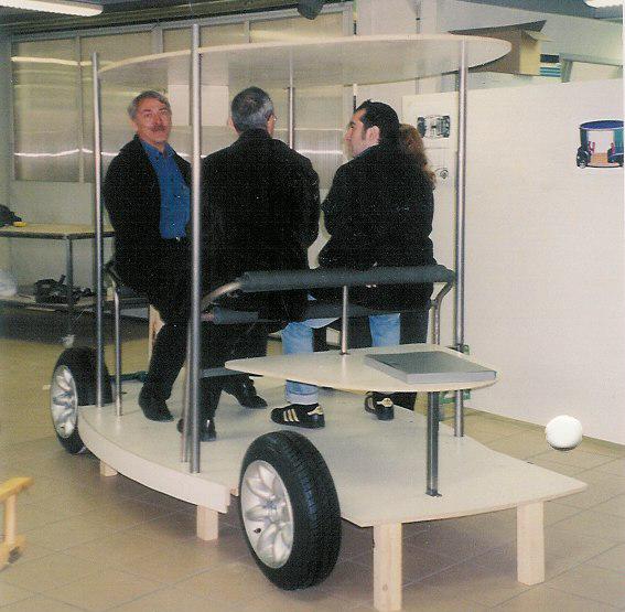 Quatre voitures de golf électriques Yamaha ont été transformés dans nos ateliers en 2001 en véhicules "filoguidés" destinés à un parc d'attraction.